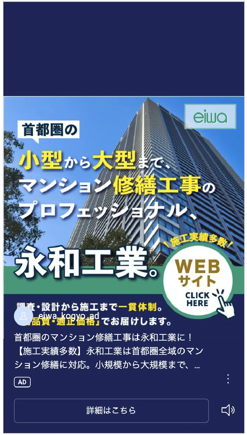 今月より、LINE、Instagramで永和工業の広告を開始しました。